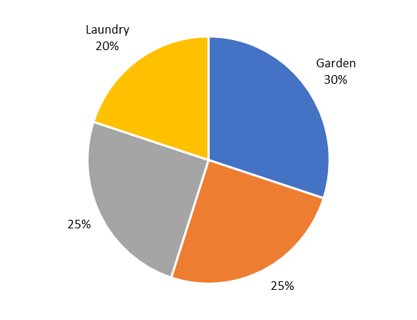 We notice that the percentages for the garden category + laundry category \(= 30\% + 20\% = 50\%\).