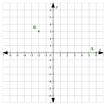The diagram shows the Cartesian plane and two points. The points are labelled \(A\) and \(B\). What are the