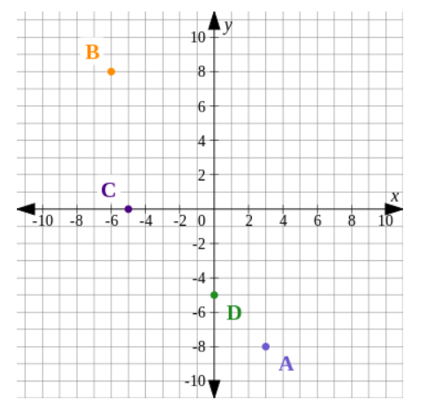 - \(A(3; -8)\), \(B(-6; 8)\), \(C(-5; 0)\), \(D(0; -5)\)