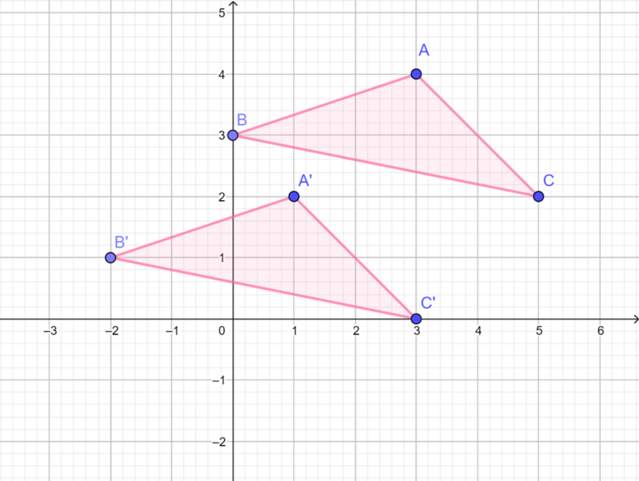 Notice that each vertex of \(\triangle{ABC}\) has been transformed by the same rule: slide 2 units to the left and 2 units downwards.