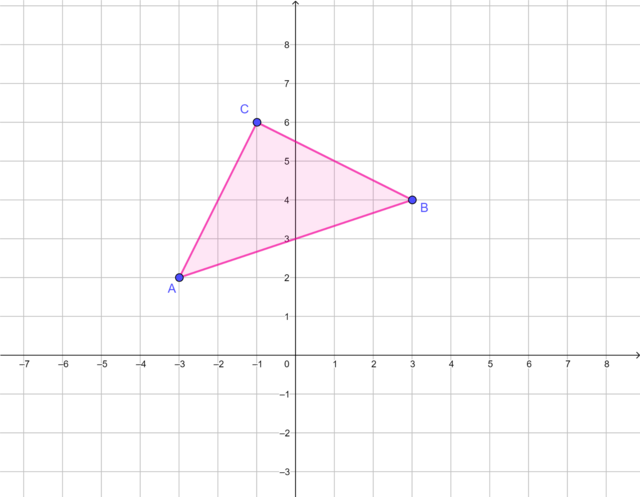 - Draw \(\triangle ABC\) with vertices \(A(-3; 2)\), \(B(3; 4)\) and \(C(-1; 6)\) on the Cartesian plane.