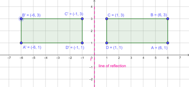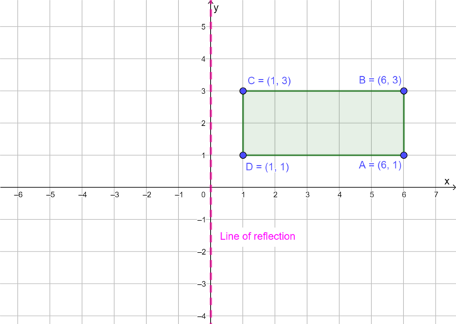 \[(x; y) \rightarrow (-x; y)\]Reflecting the vertices of rectangle \(ABCD\) in the \(y\)-axis we get: