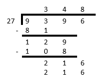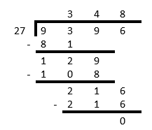 The answer is \(9\ 396 \div 27 = 348\).
