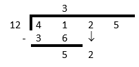 Ask the question: “How many times does \(12\) go into \(41\)?”