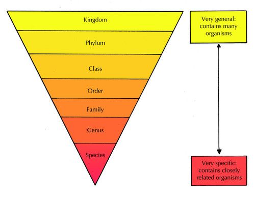 • We can divide a kingdom into smaller and smaller groups, in this order: phyla, classes, orders, families, genera and species.