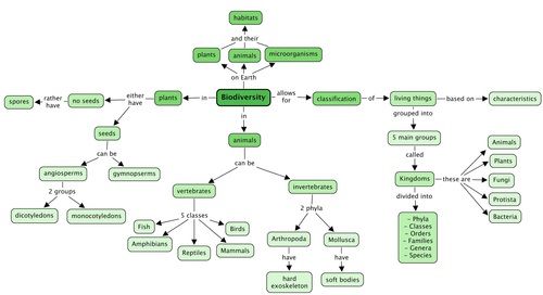 Teacher's version: Remember that concept maps are different to mind maps in that concept maps have a hierarchical structure and show how concepts link together using arrows and linking words. Whereas mindmaps generally contain a central topic and individual branches coming out which do not necessarily link together. Mindmaps can also be a useful way of summarizing information and studying, however, we are using concept maps as they help to show linkages, which is very important in science. Help your learners to "read" the concept map by showing them that the arrows show the direction in which concepts progress and are linked to each other.