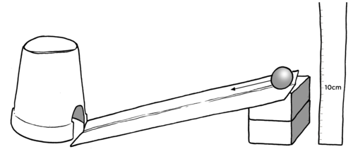4. Next adjust the height of the ramp by increasing by 5 cm each time. Each time place the marble at the top of the ramp and roll it down, measuring how far the cup moves.