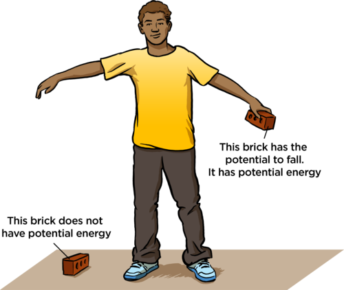 It is the energy stored inside a system. There are many different examples of potential energy. Some examples are: objects which are held above a surface, elastic bands which have been stretched, batteries contain potential energy.