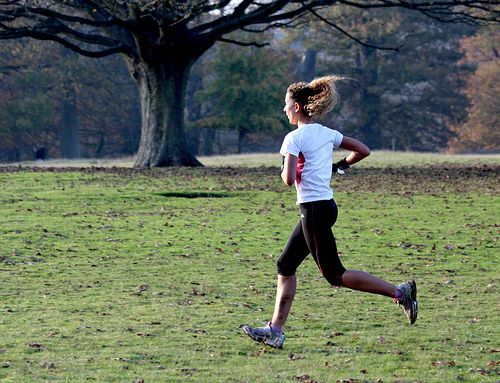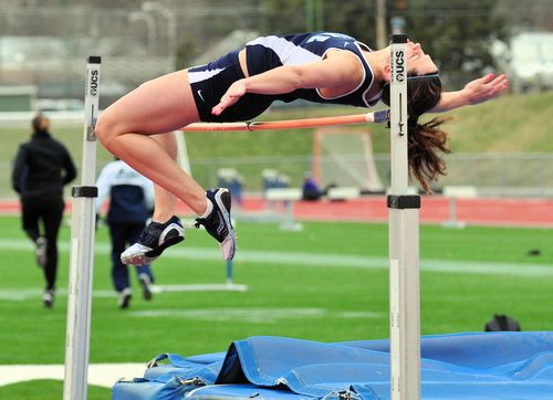 Think about her jumping, from the moment her feet leave the ground. She goes up in the air, she almost stops as she goes over the bar, and then she comes down again.