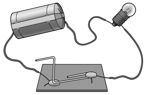 The generator then transfers the energy between two systems. The kinetic energy in the mechanical system is transferred to kinetic energy in the electrical system as it generates electricity. What parts make up the electrical system in the diagram?