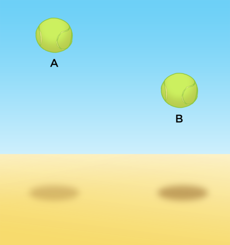 2. Ball A is higher than ball B relative to the ground and so it has more stored energy.
