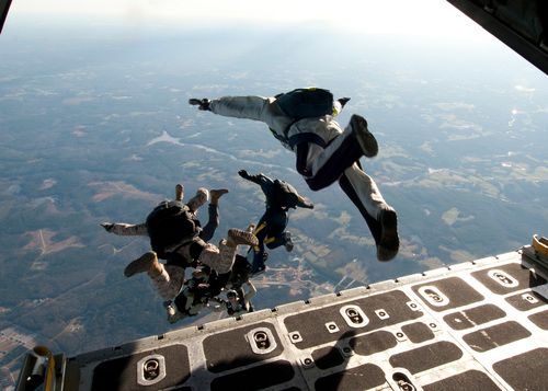 2. After skydivers jump out of a helicopter or plane, potential energy is transferred to kinetic energy as they fall.