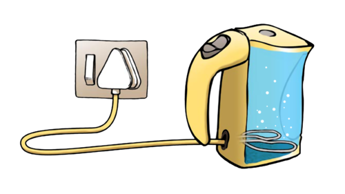 1. There are two systems involved in this image of heating water in a kettle that is plugged in. What are they? [2 marks]