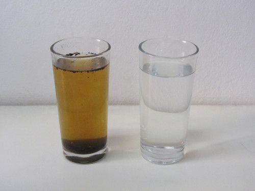 Can you see the difference between an opaque suspension of sand and clay in water (on the left) and a clear solution of sugar in water on the right?