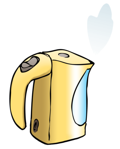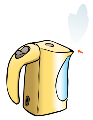 Can you see the water vapour in the following picture of a boiling kettle? Point to it with your finger. Discuss this with your teacher and classmates and when you have agreed on an answer, draw an arrow onto the picture to indicate the water vapour.