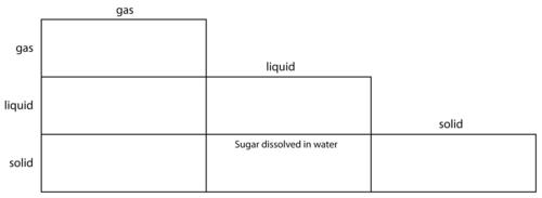 In order to make this section more interesting you could provide small samples of each of the mixtures discussed and ask learners to draw them, paying close attention to any features that a particular mixture may have. When they are faced with a solution (water and sugar, for instance) they might notice that there are no visible features to draw. This will help establish in their minds that solutions are mixtures where the substances are so intimately mixed (literally on the level of individual particles) that we cannot make out separate substances anymore.