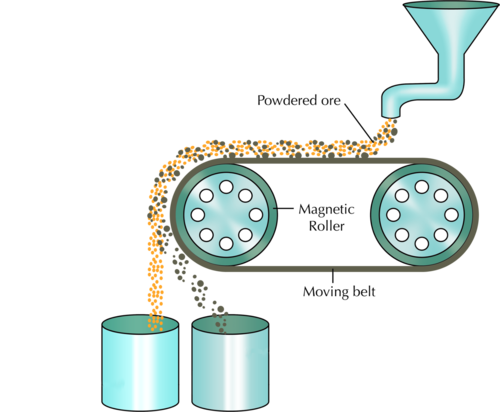 In the diagram below, iron filings and sulfur have been mixed. Write a short paragraph (2 sentences) to explain how the mixture can be separated using magnetic separation. [2 marks]