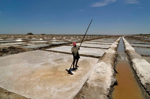 Write a short paragraph (3 sentences) to explain how salt is produced from seawater. [3 marks]