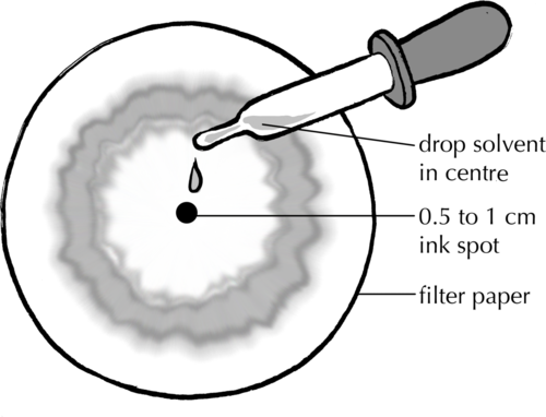 Separating ink by chromatography, hypothesising, doing investigation, observing, recording information, comparing, interpreting information,