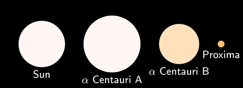 A smaller, fainter star, called Proxima Centauri, orbits much farther out. If you were to look at Alpha Centauri through a small telescope, instead of one star you would be able to make out the two separate stars Alpha Centauri A and B next to each other. Proxima Centauri is much fainter and further away from the other two so you would not see this one with the other two.
