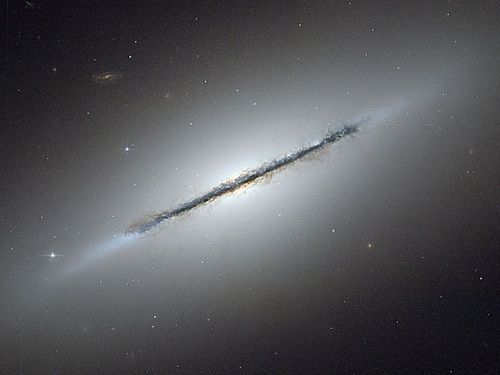 Lenticular galaxy (because disk shaped, with a central bulge, but no spiral arms) |