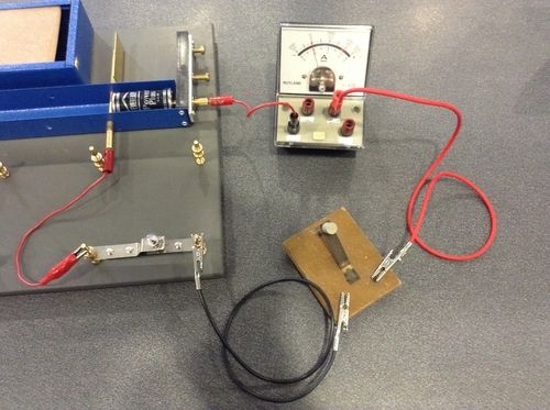 An example circuit diagram with the break in the circuit where metals are to be tested shown on the left.