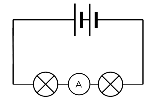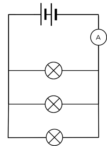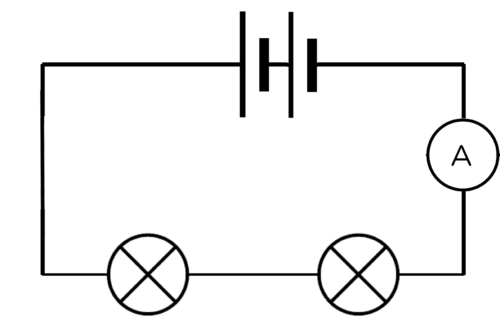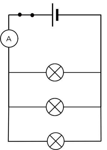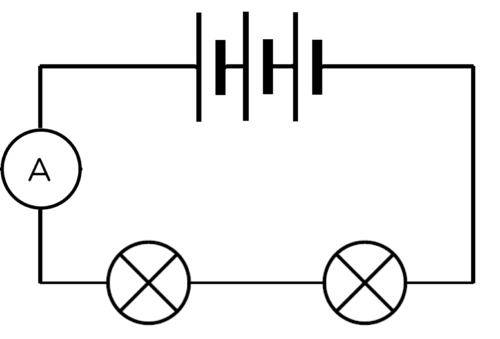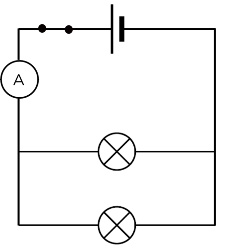 Note how brightly the bulbs are shining and write down the ammeter reading. Draw a circuit diagram.