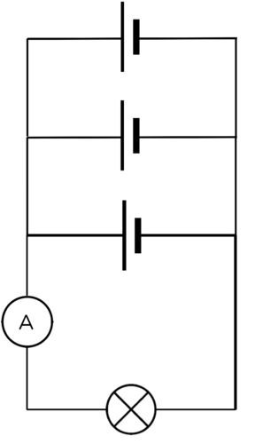 Connect a third cell in parallel to the other two cells. Draw a circuit diagram of your circuit.