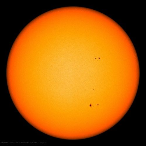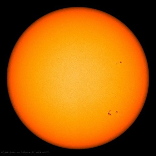 Sunspots are sometimes (not always) visible on the Sun's surface. You are more likely to see sunspots when the Sun is most active during solar maximum. The Sun's activity varies over an 11 year cycle. Solar maximum is currently predicted to be in 2013. Solar minimum is currently predicted to be in 2019. As an extension you could repeat this activity over the course of several days to see if any sunspots or sunspot groups change shape, size, or position over time.