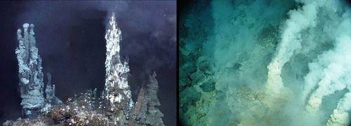 Scientists are busy exploring the possible locations for the origin of life, including hot springs and tidal pools. Recently, some scientists have started to support the hypothesis that life originated in deep sea hydrothermal vents, as shown in the image. These vents are like underwater volcanoes. The investigation continues to try to understand how life originated on Earth.