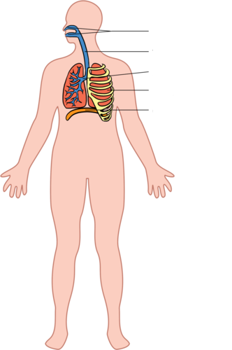 Learners should show the following in a cycle: Rib muscles contract \(\rightarrow\) rib cage moves up and out \(\rightarrow\) diaphragm contracts \(\rightarrow\) diaphragm moves downwards (flattens) \(\rightarrow\) rib cage volume increases \(\rightarrow\) lungs expand \(\rightarrow\) take in more oxygen \(\rightarrow\) rib muscles relax \(\rightarrow\) rib cage moves downwards and inwards \(\rightarrow\) diaphragm relaxes \(\rightarrow\) rib cage volume decreases \(\rightarrow\) this pushes out the air from the lungs.