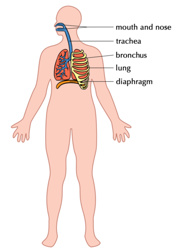 Teachers should try and make sure the learners understand the concept that the volume of the chest cavity changes the air pressure in the lungs and results in inhalation and exhalation. During inhalation, the chest cavity expands (gets bigger). When this happens the air pressure inside the lung decreases (because there is the same amount of air in a bigger space). In order to equalize with the air outside, air rushes in to the lungs. Similarly, when the chest cavity contracts (becomes smaller) during exhalation, the air pressure inside increases, and the air is pushed out to equalize with the atmosphere.