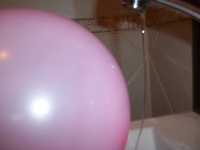 Water being attracted to a charged balloon