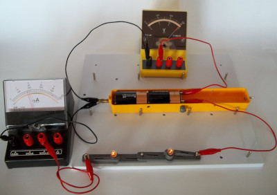 Set up the circuit according to circuit diagram 1), starting with just one cell.