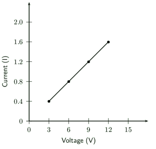 The gradient of the straight-line graph is related to the resistance of the conductor as \[\frac{I}{V} = \frac{1}{R}\] This can be rearranged in terms of the constant resistance as: \[R = \frac{V}{I}\]