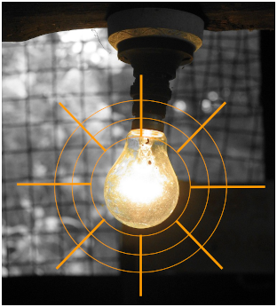 The lightbulb is a source of light. The light wavefronts are shown by the concentric circles coming from the bulb. We represent the direction in which the wavefronts are moving by drawing light rays (the arrows) perpendicular to the wavefronts.