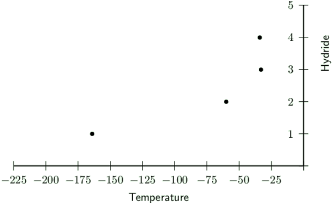 There is a decrease in the temperature from the first hydride (number \(\text{4}\) on the graph) to the last one (number \(\text{1}\) on the graph). The shape of the graph shows the decreasing intermolecular forces between the molecules in the compounds.