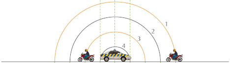 police car observed the crests and troughs numbered 1 through 5 (the portion