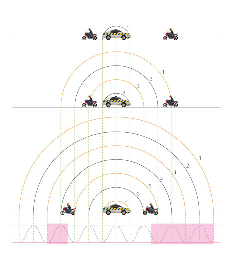 Just as we did before, let us consider a source (a police car) of sound waves with a constant