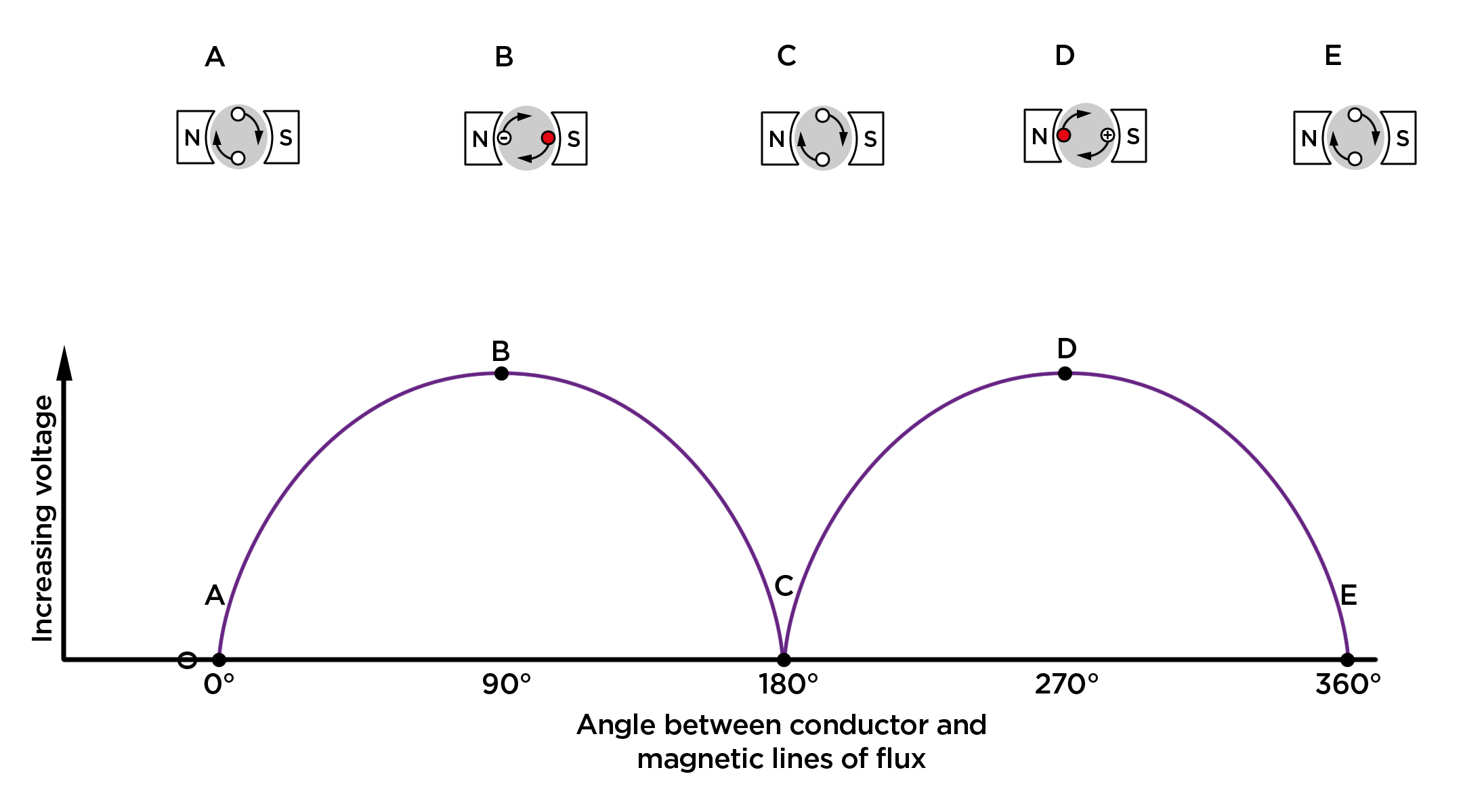 changes with every half turn of the coil. As one side of the loop moves to the other