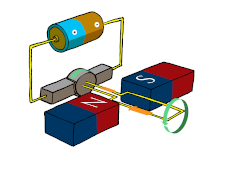 If the current is DC, split-ring commutators are required to create a DC motor. This is shown
