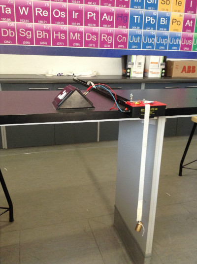 ticker tape will be perpendicular to the floor. Plug in the timer.